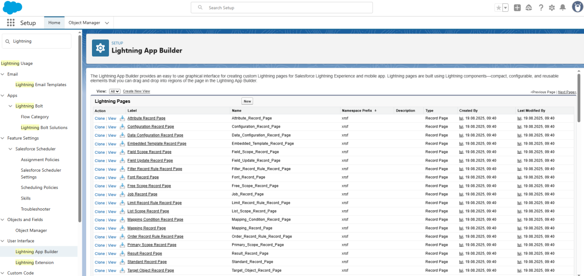 Da Salesforce bei Installation von Applikationen wie XRSF die Aktivierung von Record Pages bei gleichzeitiger Nutzung von Record Types leider nicht zulässt, muss dies nach Installation einmalig manuell erfolgen. Die Aktivierung ist essenziell, um alle Funktionen von XRSF vollumfänglich nutzen zu können.