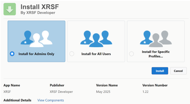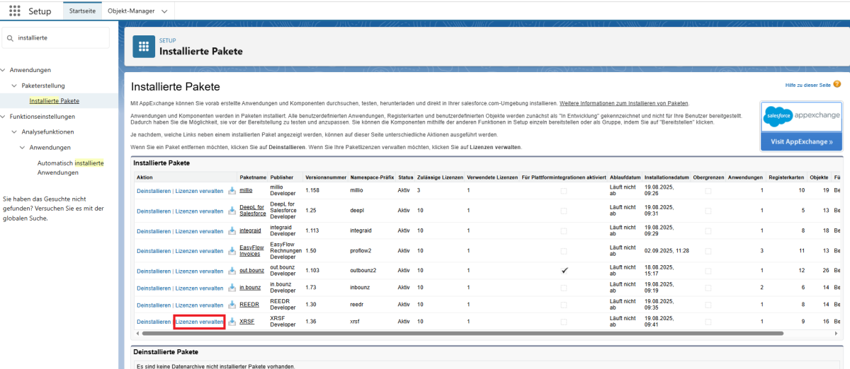 XRSF kann über den Salesforce AppExchange installiert werden.