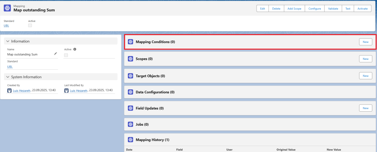 Hinweis: Es ist möglich, mehrere Mapping Conditions basierend auf demselben Objekt zu definieren. Achte dementsprechend darauf, Mapping Conditions so zu definieren, dass sie sich nicht gegenseitig ausschließen. Dies kann theoretisch dazu führen, dass ein Mapping niemals ausgeführt wird.