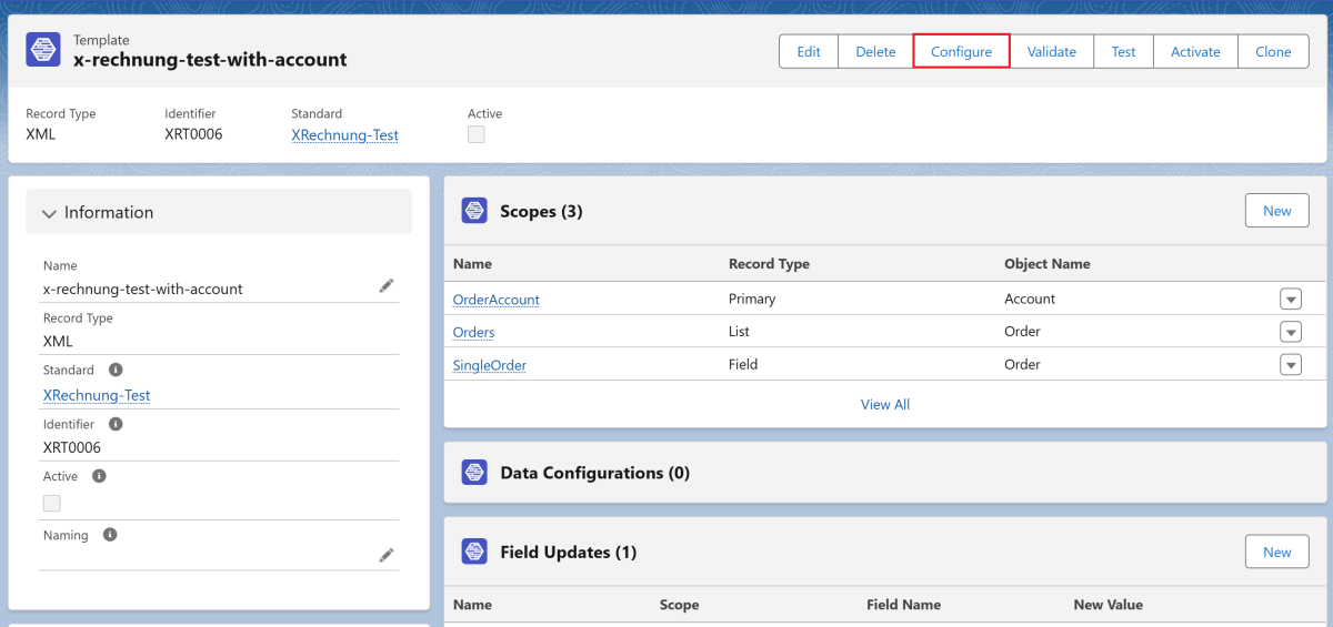 Um eingehende Rechnungen zu verarbeiten und Salesforce-Datensätze basierend auf deren Inhalt zu erstellen oder zu aktualisieren nutzt XRSF "Mappings". Mappings definieren, unter welchen Bedingungen welche Felder oder Listen in deiner Salesforce Organisation modifiziert werden. Sie sind in der Struktur ähnlich zu Templates, da sie ebenfalls auf Scopes und Data Configurations basieren. Mappings können jedoch keine Rechnungen generieren.