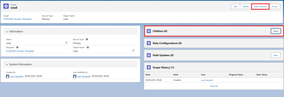 Configurations | Hier kannst du die Haupteinstellungen von CRSF in einem Konfigurationsdatensatz festlegen, welchen wir bei der Einrichtung bereits für dich erstellt haben. |