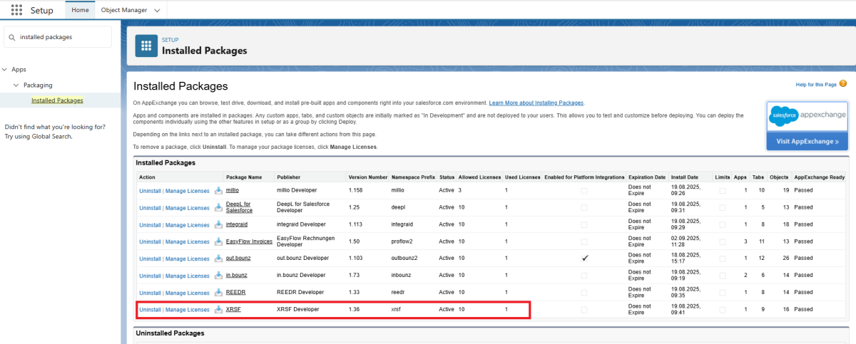 After installation is complete, we recommend checking the installation in the ‘Packages’ section under "Installed Packages" in the Salesforce Setup.